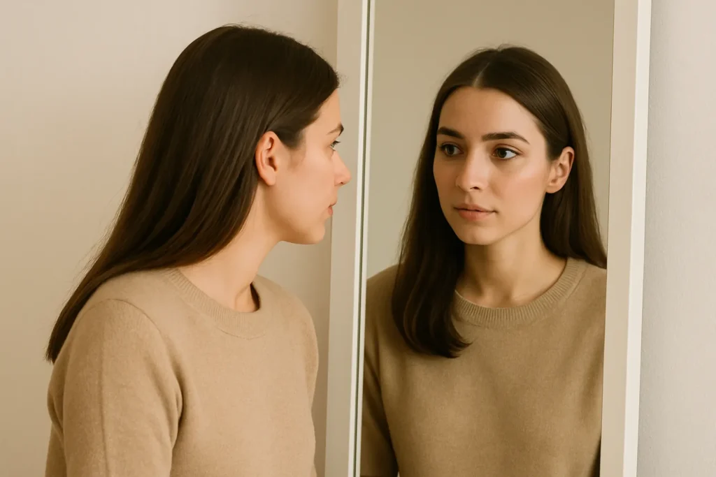 Les personnes complexées ne voient plus leur image réelle, mais un reflet altéré par une comparaison permanente à un idéal souvent inaccessible. Elles se focalisent sur un détail physique et en oublient leur globalité. Cette vision déformée est à la fois le fruit du regard social… et d’un jugement intérieur excessif.